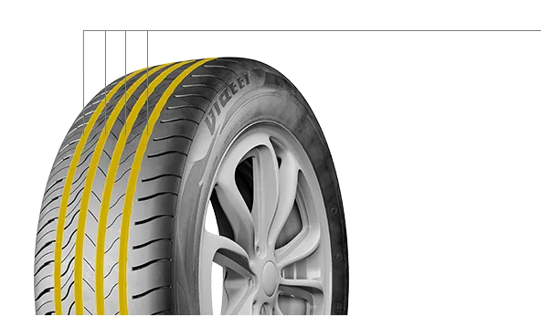 - Центральные кольцевые канавки обеспечивают эффективный отвод воды из пятна контакта шины с дорогой в условиях дождя, создавая высокий уровень сопротивления аквапланированию.