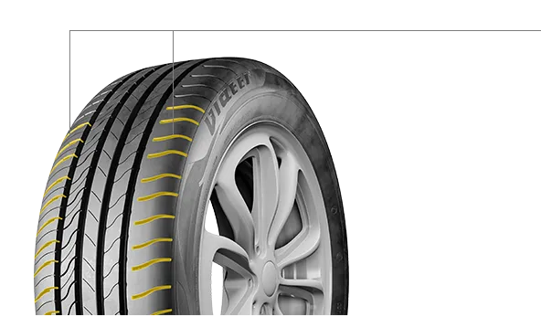 - Оптимально построенный профиль и распределение материалов в зоне боковины обеспечивают баланс характеристик управляемости и демпфирования шины для комфортной эксплуатации в любых условиях.